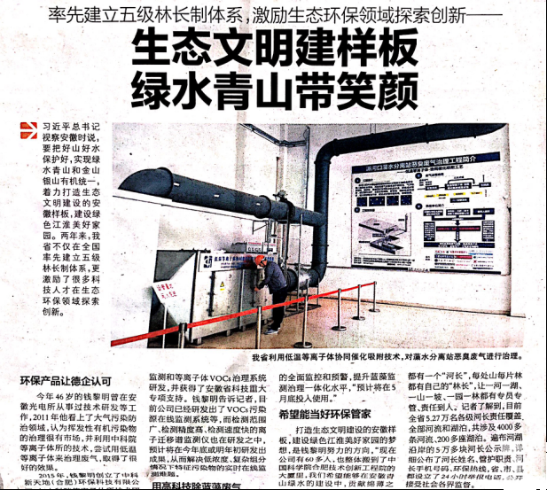 铭记关怀,不负重托,以董事长兼总裁钱黎明为核心的中科新天地迈着坚实步伐,向环保领域交上了一份崭新的“绿色答卷”,受到多方媒体高度关注,2018年4月26日新安晚报对我司做了集中报道。