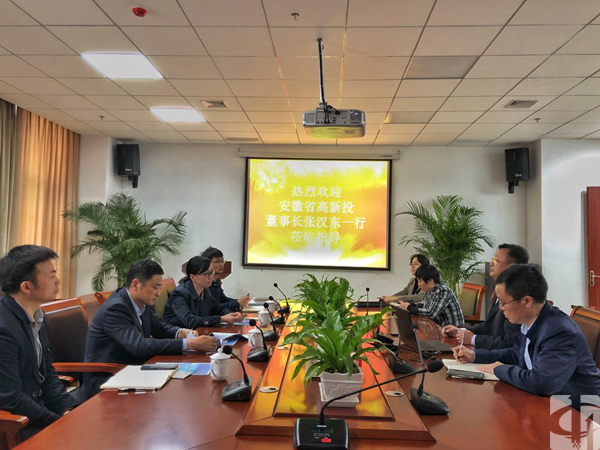 2018年4月23日,安徽高新技术产业投资有限公司董事长、安徽省创业投资管理有限公司执行董事张汉东、安徽省创业投资公司副总经理王艳、投资总监桑海波、投资经理汪洋一行4人,赴我司考察调研。公司董事长兼总裁钱黎明、副总经理桂旺胜博士等接待了调研组。