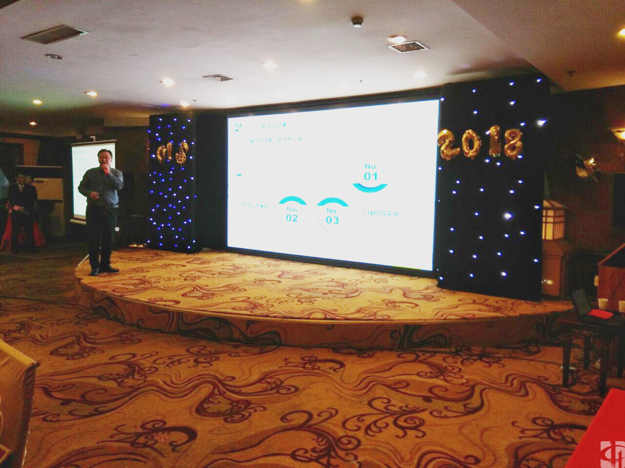 在钱总的带领下大家共同举杯为2018年干杯,也为2017年的努力和奋斗干杯。新天地,新征程,所有中科新天地人将以崭新的面貌迎接2018年的到来。伴随着桌上一道道美味佳肴和大厅内美妙的背景音乐,所有人都沉浸在年会晚宴的欢乐之中。