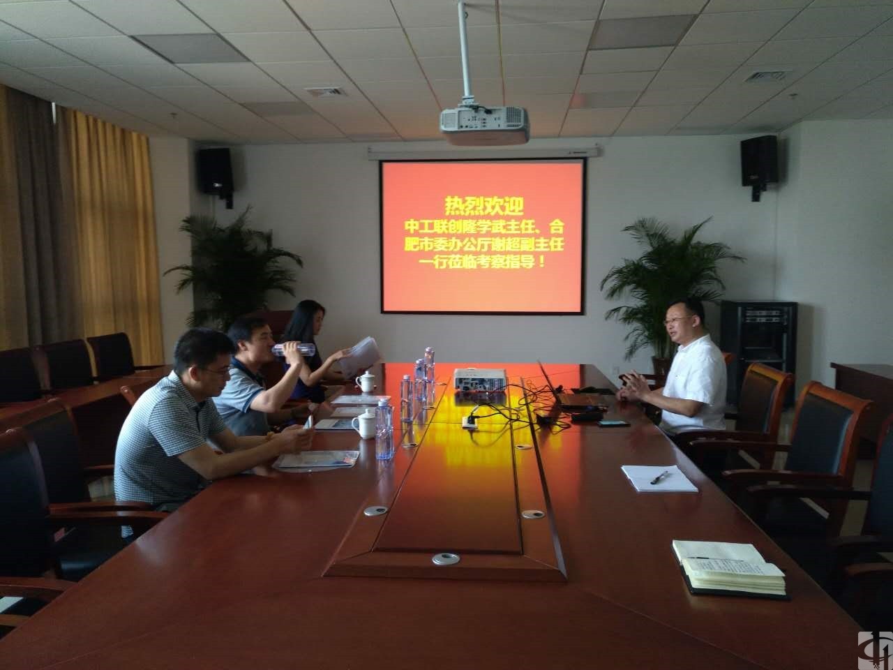 2017年6月2日下午,中工联创国际装备制造研究中心隆学武主任、经理郑璐璐在合肥市委办公厅谢超主任的带领下对我公司进行了考察和调研,公司董事长兼总裁钱黎明、总经办主任赵双伍、技术中心陆晓飞等热情接待了调研团一行。